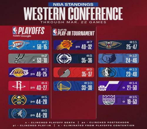雷霆目前取得11連勝,56勝15負依然高居全聯盟第一,領先馬刺3個勝場。在二當家傑威長期缺陣的情況下,雷霆依然保住了聯盟領頭羊的位置。雷霆有資本讓傑威繼續休息,不過他需要利用常規賽找回狀態,為季後賽做好準備。