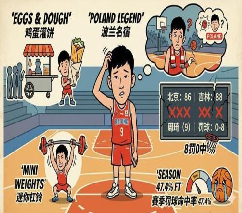 經曆了海外漂泊、無球可打、合同糾紛,兜兜轉轉回到CBA的周琦,雖然依然是國內最具統治力的內線,但他的“抽象體質”從未消失。 就拿這次的8罰0中來說,運動戰能10投8中砍瓜切菜,一站上罰球線卻變成了“瞄準鏡失靈”。皮球在籃筐上彈框而出的聲音,簡直是一首極簡主義打擊樂。兩場22罰5中,你很難想象這是一個手感柔和的現代中鋒能刷出來的數據。
