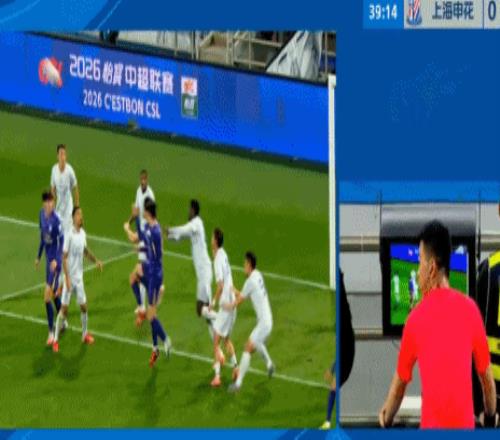 第39分鍾,巴頓開出角球,申花解圍之後快速反擊,並且獲得角球。然而,就在高天意準備主罰角球的時候,視頻助理裁判介入判罰,並且要求主裁判回看慢鏡頭。