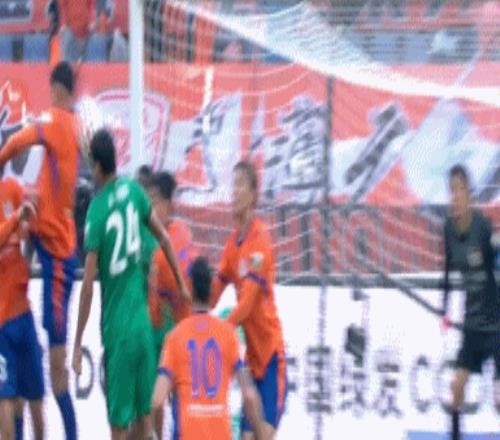 從慢鏡頭來看,球打在了蓋伊伸出的手臂上。回看慢鏡頭之後,主裁判判罰點球,蓋伊一臉震驚地表示,“是我嗎?”謝蒂內主罰點球破門,打入了津門虎賽季首球。