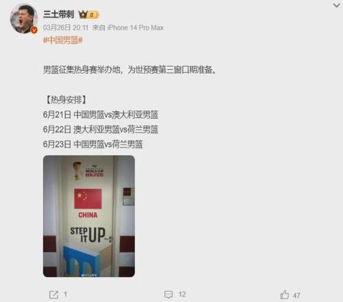 今年7月3日以及7月6日的世預賽第三窗口期,中國男籃再次迎戰日本男籃和中國台北隊,在此之前還有幾場熱身賽要打,對手為澳大利亞男籃與荷蘭男籃。