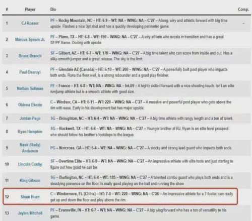 之前美媒NBA Draft Room公布了2028年NBA選秀預測名單,顯示郇斯楠為首輪第12號秀。